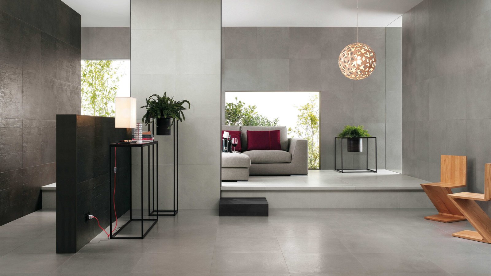 ندمج النمط الديكورى للتصميم الداخلى مع عناصر الديكور فى المساحات الخارجية مثل الحديقة ( لاندسكيب ) ، حمامات السباحة، الأسوار والواجهات، المصاعد المنزلية وجميع عناصر التصميم والتشطيب الخارجي للفيلات والقصور
